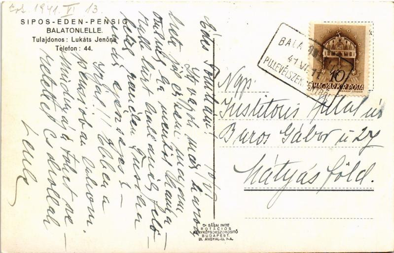 Balatonlelle, Éden pensio, vendéglő, étterem, Sipos Pensio bejárata a ... https://www.darabanth.com/hu/40-Nagyaukcio/40.1/Kepeslapok/Magyarorszag~16468/Balatonlelle-Eden-pensio-vendeglo-etterem-Sipos-Pensio-bejarata-a-kertbe-Tulajdonos-Luka~II2865981