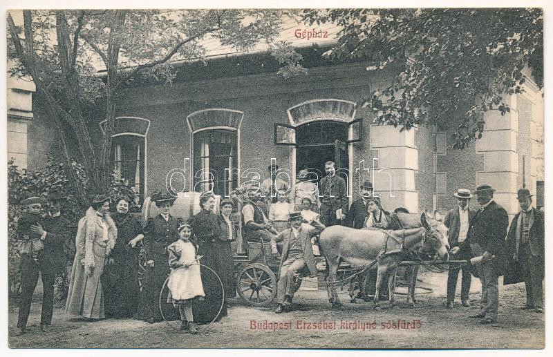 Leírás: Budapest XI. Kelenföld, Erzsébet királyné sósfürdő, gépház, szamár hintó. Tétényi út 12-16.