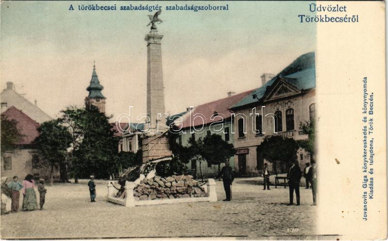 Törökbecse, Újbecse, Novi Becej; Szabadság tér és szobor, Royal szálloda. Jovanovits Giga kiadása / square, monument of the Hungarian Revolution of 1848, hotel