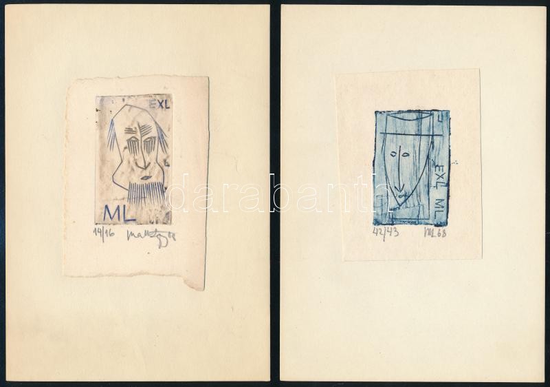 Leírás: Mart Lepp (1947-): 3 db ex libris. Rézkarc, papír, számozott, jelzett, lap felső része papírra kasírozva klf. méretben
