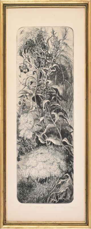 Leírás: Hu... jelzéssel: Füvek. Rézkarc, papír, Jelzett sorszámozott 18/100. Keretben. 44x13 cm