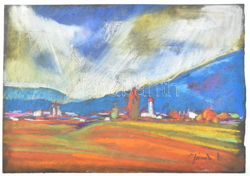 Leírás: Jándi D jelzéssel: Táj. Pasztell, papír. Lap széle vágott. 35×50 cm