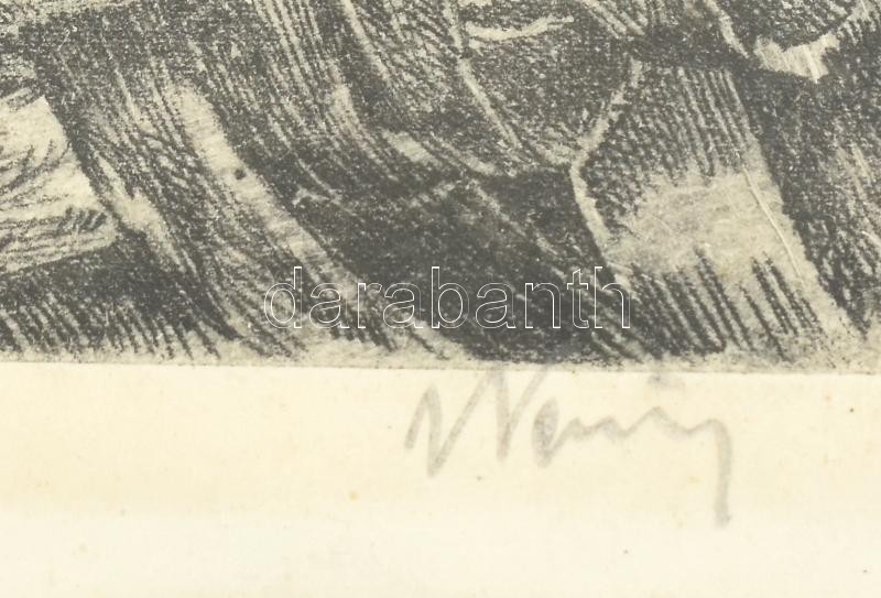 Leírás: Olvashatatlan jelzéssel: Macskák, rézkarc, papír, jelzett, üvegezett keretben, 16×21 cm