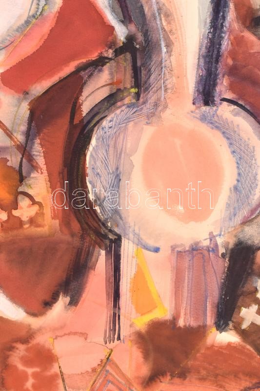 Leírás: Misch Ádám (1935-1995): Tarka mező (eredetileg cím nélkül), 1974. Akvarell, papír, jelzett (Misch 74), 61,5x47,5 cm