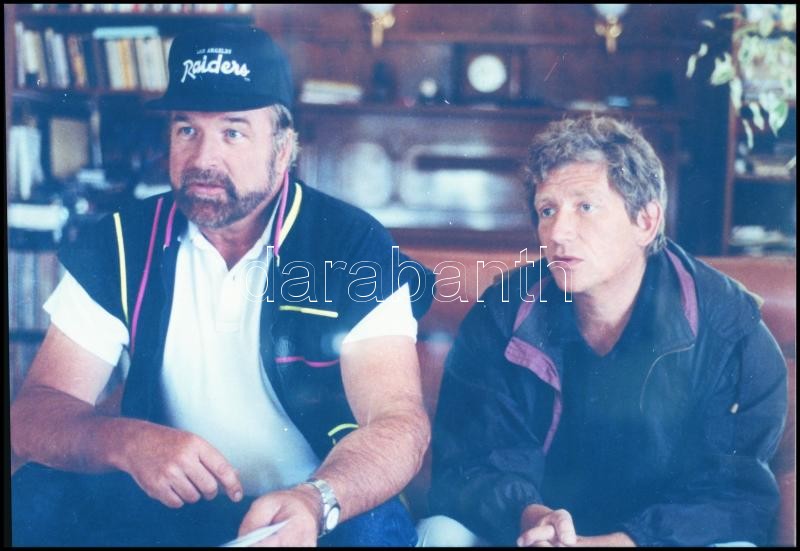 cca 1991 Bujtor István (1942-2009) színművész és filmrendező a Hamis a baba c. film jeleneteiben, 6 db NEGATÍV Pánczél György (1920-?) filmtörténész film- és színházifotó-gyűjteményéből, 5x7,5 cm