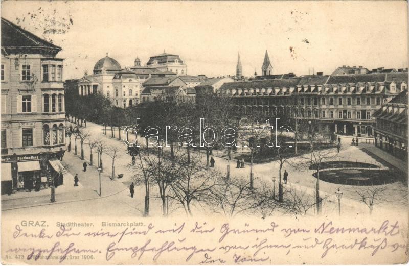1906 Graz, Stadttheater, Bismarckplatz, Buchhandlung / street, square,... https://www.darabanth.com/hu/400-Gyorsarveres/400.0/Kepeslapok/Ausztria~1000026/1906-Graz-Stadttheater-Bismarckplatz-Buchhandlung-street-square-theatre-shops~II2449482