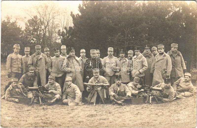 Leírás: 1915 Királyhida, Bruckújfalu, Bruckneudorf; katonák csoportképe gépfegyverekkel / K.u.k. military, soldiers mwith machine guns. photo (kis szakadás / small tear)