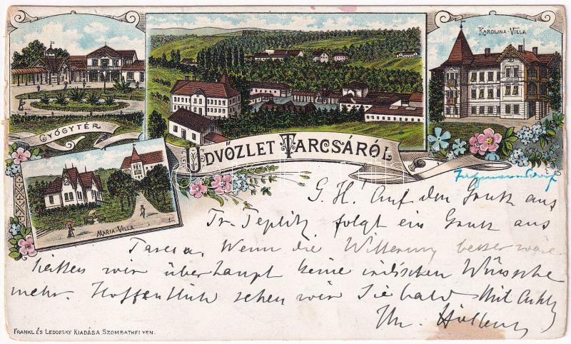 Leírás: Tarcsa, Tatzmannsdorf; gyógytér, Karolina és Maria villa. Frankl és Ledofsky / spa park, villas. Art Nouveau, floral, litho