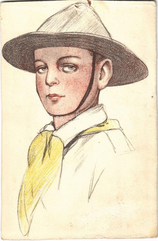 Leírás: Kiadja a Magyar Cserkészszövetség Nagytábortanácsa 1926. / Hungarian boy scout art postcard s: Márton L. (vágott / cut)