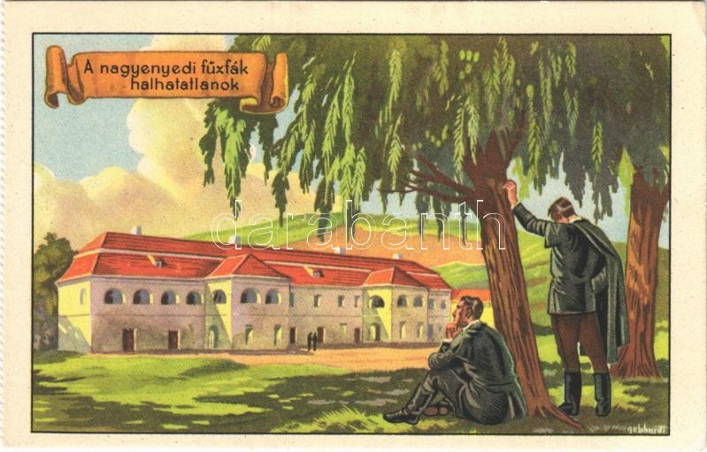Nagyenyed, Aiud; "A nagyenyedi fűzfák halhatatlanok." Kollégium. Kiadja a Székely Egyetemi és Főiskolai Hallgatók Egyesülete / Hungarian irredenta art postcard, college s: Gebhardt (képeslapfüzetből / from postcard booklet) (EK)