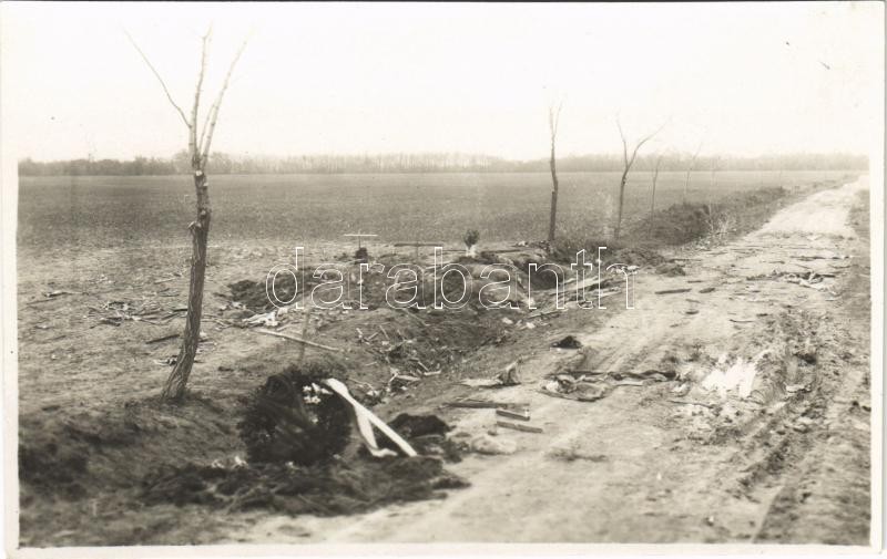 1919 Pozsony, Pressburg, Bratislava; Milan Rastislav Stefánik halálának helyszíne koszorúkkal a lezuhant repülőgép maradványaival / Miesto nestastia generála Stefanika / place of death of Milan Rastislav Stefánik and the remains of the aircraft, wreaths. photo