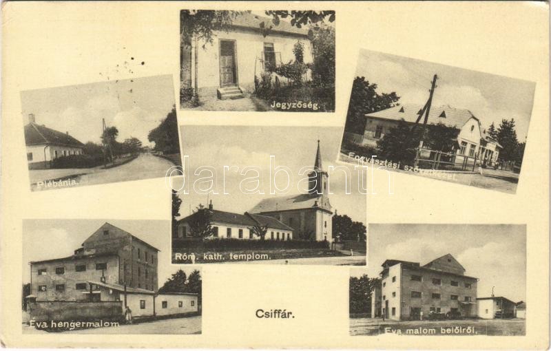 1943 Csiffár, Cifáre; Jegyzőség, Római katolikus templom és plébánia, Éva hengermalom, Fogyasztási szövetkezet üzlete és saját kiadása / notary, church and rectory, mill, cooperative shop (EK)