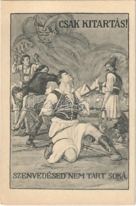 Csak kitartás! Szenvedésed nem tart soká! Magyarország Területi Épségének Védelmi Ligája kiadása / Hungarian irredenta propaganda art postcard, Trianon s: Sándor B. (EM)