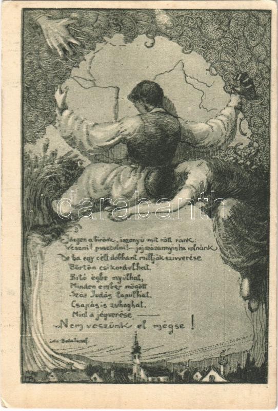 Nem veszünk el mégse! Kiadja a "Szózat" Magyarország Területi Épségének Védelmi Ligája napilapja / "We shall never perish!" Hungarian irredenta propaganda, Trianon s: Péczely Antal (ragasztónyom / glue marks)