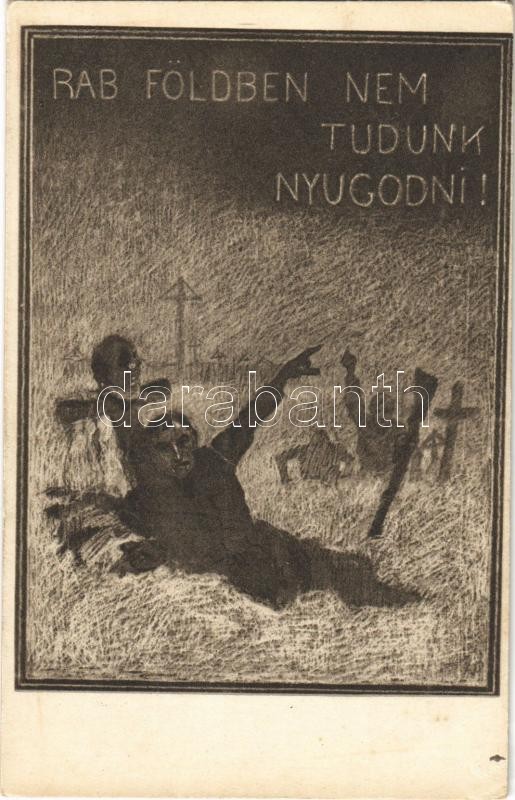 Rab földben nem tudunk nyugodni! Kiadja "A Szózat" Magyarország Területi Épségének Védelmi Ligája / "We cannot repose in peace in the land of bondage!" Hungarian irredenta propaganda s: Juszkó Béla (fl)