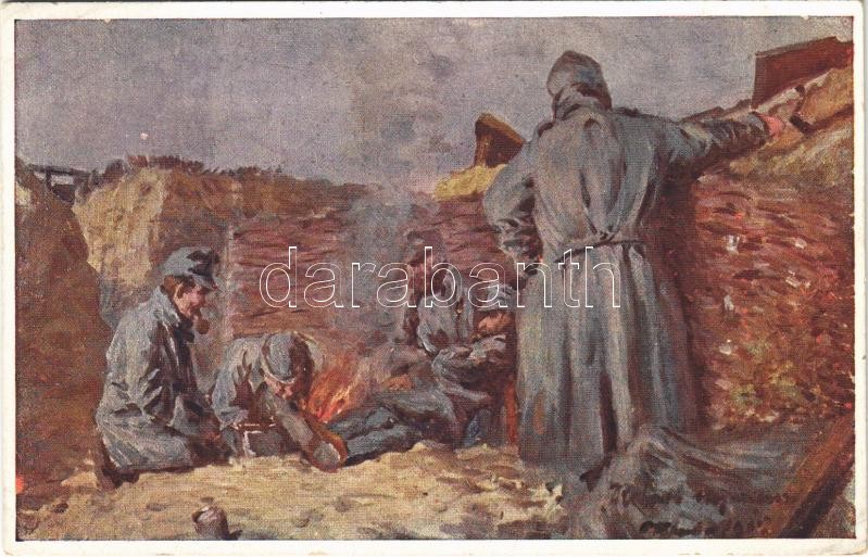 1916 Hesser-Feuerl. Offizielle Karte für Rotes Kreuz, Kriegsfürsorgeamt, Kriegshilfsbüro No. 440. / WWI Austro-Hungarian K.u.K. military art postcard, soldiers in the trenches (EK)