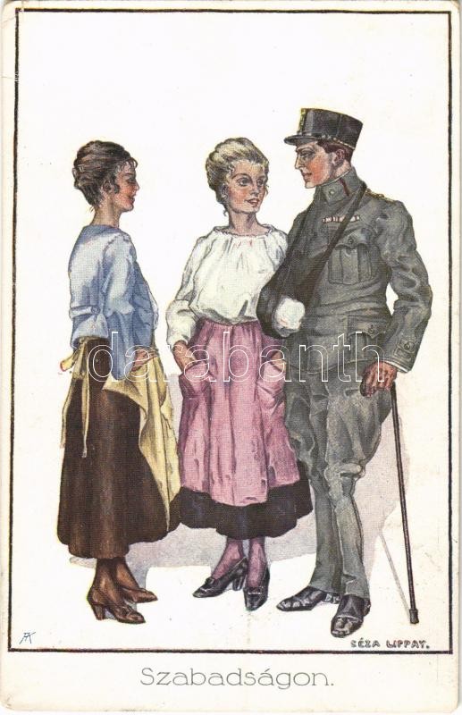 Leírás: 1917 Szabadságon. osztrák-magyar sérült katona / WWI K.u.K. military art postcard s: Géza Lippay