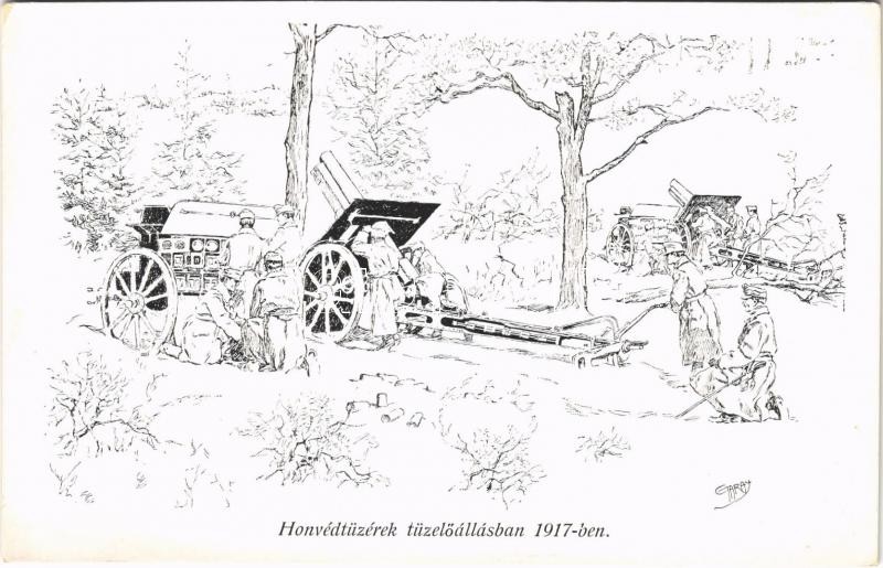 Honvéd tüzérek tüzelőállásban 1917-ben. Honvédség története 1868-1918 ... https://www.darabanth.com/hu/400-Gyorsarveres/400.0/Kepeslapok/Katonai~1000080/Honved-tuzerek-tuzeloallasban-1917-ben-Honvedseg-tortenete-1868-1918-WWI-Austro-Hungar~II2447812