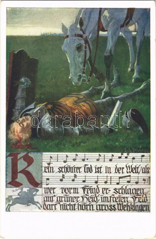 Kein schönrer Tod ist in der Welt... / WWI Austro-Hungarian K.u.K. military art postcard, charity fund. Offizielle Karte für Rotes Kreuz, Kriegsfürsorgeamt Kriegshilfsbüro Nr. 54C. s: R. Assmann (EK)