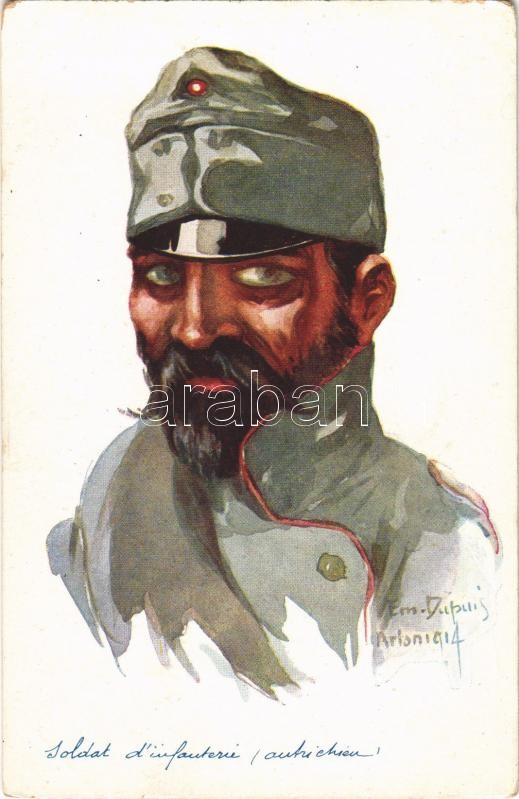 Leírás: Soldat d'infanterie (autrichien) / WWI French military art postcard, Austro-Hungarian K.u.K. soldier. Visé Paris No. 26. "Leurs Caboches" s: Em. Dupuis (EK)