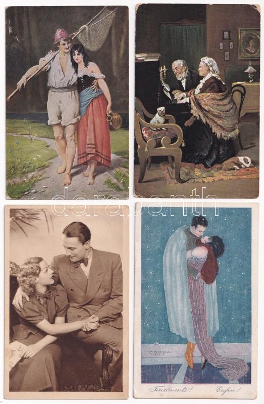 Leírás: 6 db RÉGI motívum képeslap: romantikus párok / 6 pre-1945 motive postcards: romantic couples