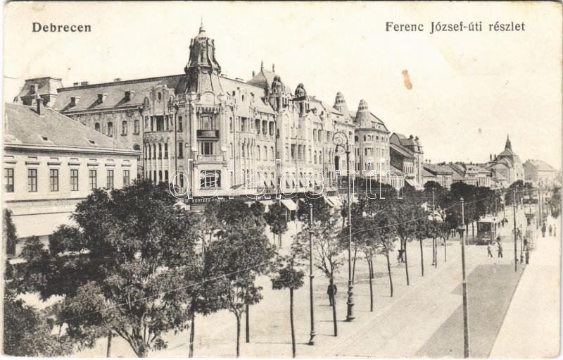 1917 Debrecen, Ferenc József út, villamos, Kontsek Kornél és Tóth üzle... https://www.darabanth.com/hu/400-Gyorsarveres/400.0/Kepeslapok/Magyarorszag~1000006/1917-Debrecen-Ferenc-Jozsef-ut-villamos-Kontsek-Kornel-es-Toth-uzlete~II2450314