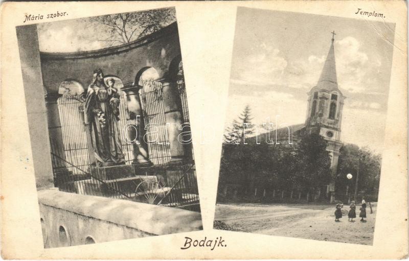 Leírás: 1928 Bodajk, Mária szobor, Templom. Varga Mihály kiadása (EB)