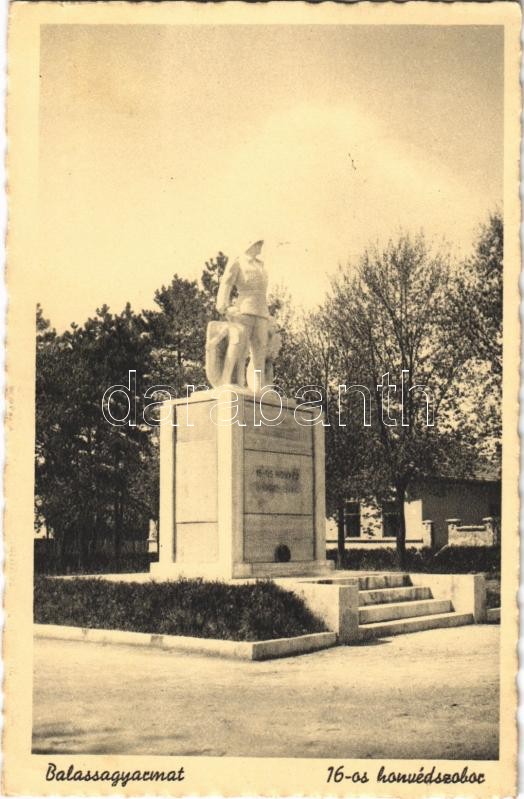 1940 Balassagyarmat, 16-os honvédszobor https://www.darabanth.com/hu/400-Gyorsarveres/400.0/Kepeslapok/Magyarorszag~1000006/1940-Balassagyarmat-16-os-honvedszobor~II2455241