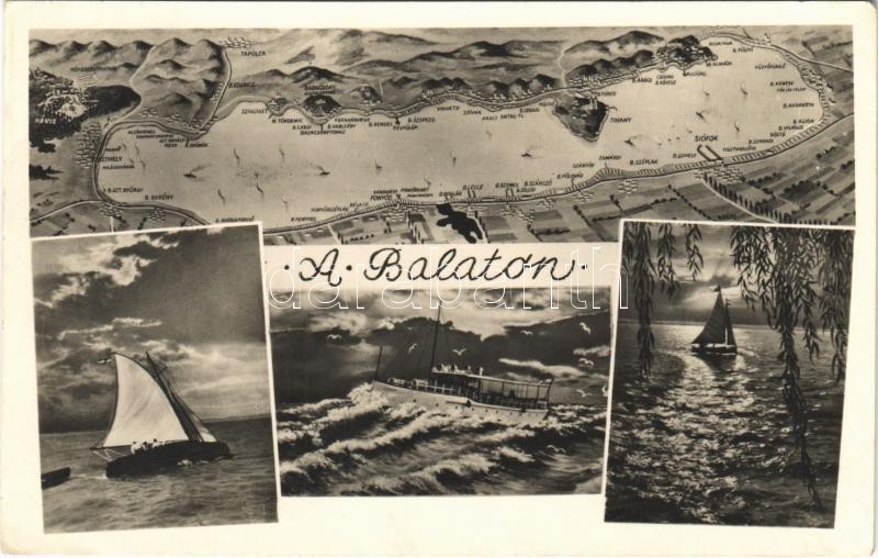 1942 Balaton, vitorlások, térkép, Csongrád gőzös https://www.darabanth.com/hu/400-Gyorsarveres/400.0/Kepeslapok/Magyarorszag~1000006/1942-Balaton-vitorlasok-terkep-Csongrad-gozos~II2452648