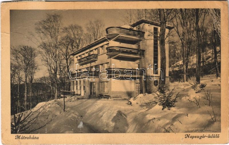Leírás: 1942 Mátraháza (Gyöngyös), Napsugár üdülő télen (JOINT zsidó világszervezet üdülője), bauhaus. Özv. Klein S. H.-né kiadása (EB)