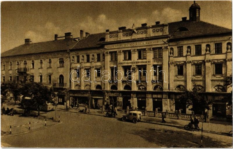 Leírás: ~1958 Gyöngyös, Nagyszálló, Gyöngyös-Egervidéki Borforgalmi NV., autóbusz, autómobil. Képzőművészeti Alap Kiadóvállalat