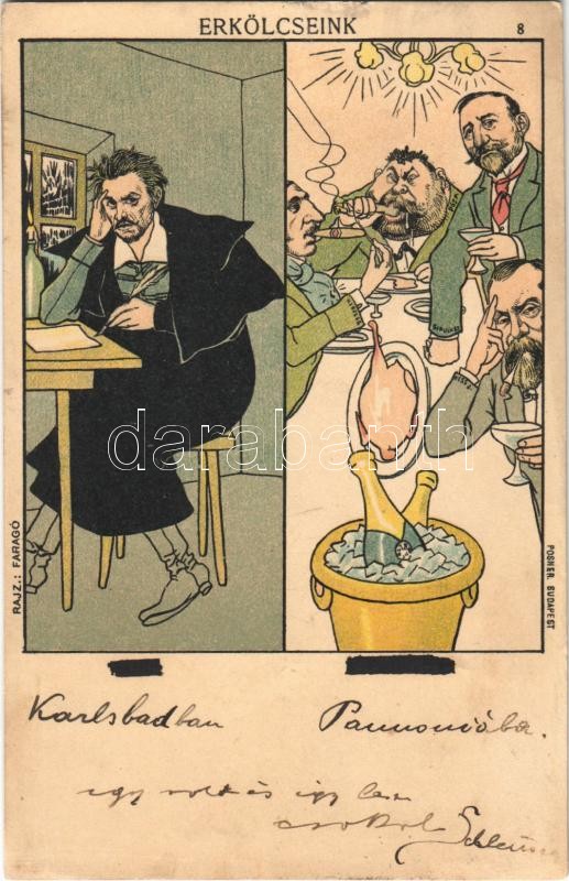 1901 Faragó Géza: Erkölcseink képeslap sorozat 8. Posner / Our moralit... https://www.darabanth.com/hu/400-Gyorsarveres/400.0/Kepeslapok/Muveszlapok~1000086/1901-Farago-Geza-Erkolcseink-kepeslap-sorozat-8-Posner-Our-moralities-Hungarian-art-postcar~II2453560