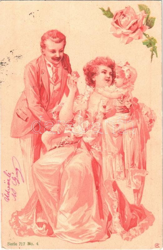1902 Art Nouveau family. Serie 717. No. 4. litho s: H.G. R. (Geiger)
