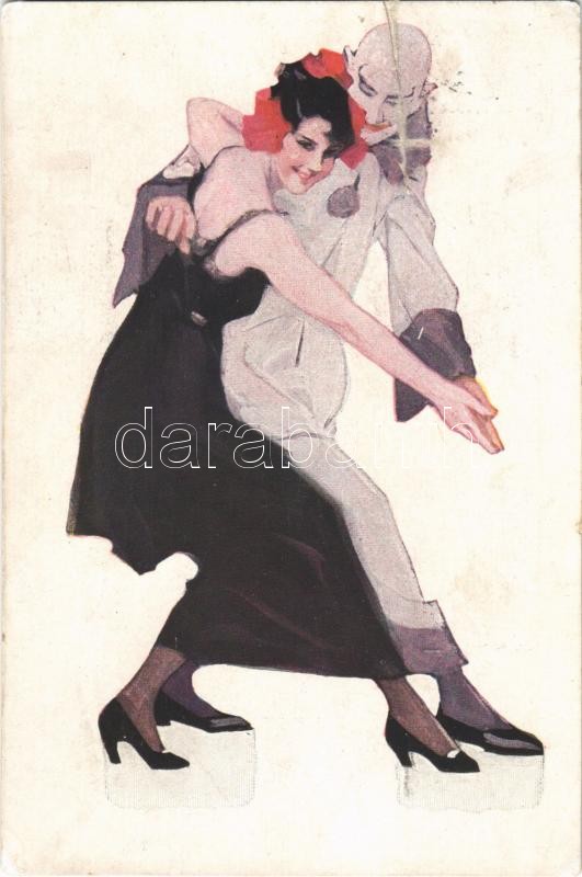 1921 Lady dancing with clown, art postcard (b) https://www.darabanth.com/hu/400-Gyorsarveres/400.0/Kepeslapok/Muveszlapok~1000086/1921-Lady-dancing-with-clown-art-postcard-b~II2454568