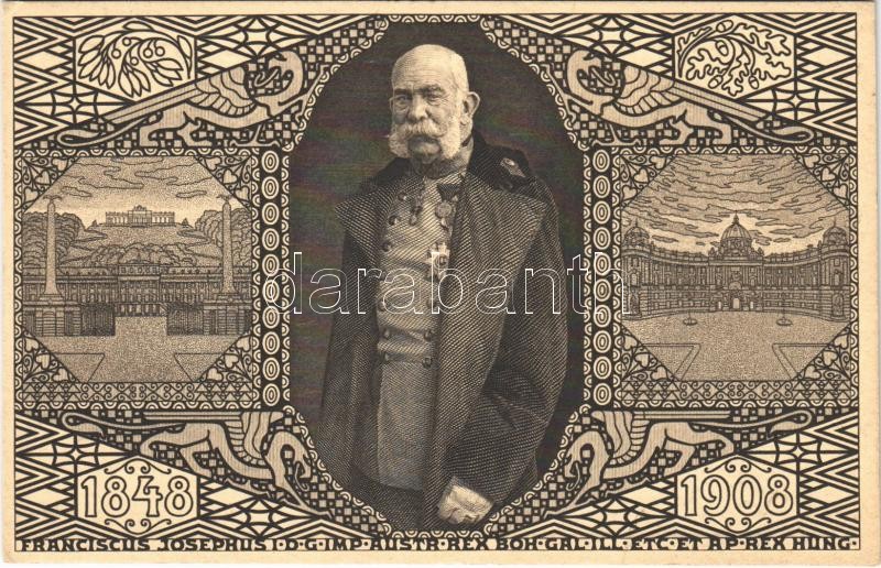 1848-1908 Franciscus Josephus I.D.G. Imp. Austr. Rex Boh.Gal.Ill. Etc. et. Ap. Rex Hung. / Ferenc József uralkodásának 60. évordulója, jubileumi díjjegyes lap / Franz Joseph's 60th anniversary of reign. Art Nouveau, Viribus Unitis. 5 Heller Ga.