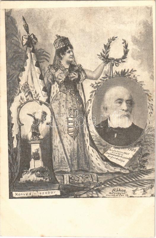 1902 Kossuth Lajos születésének 100. évfordulójára, emléklap, Blaha Lujza, Honvéd-szobor. Rákos műterméből / 100th anniversary of Kossuth Lajos's birthday, statue, coat of arms