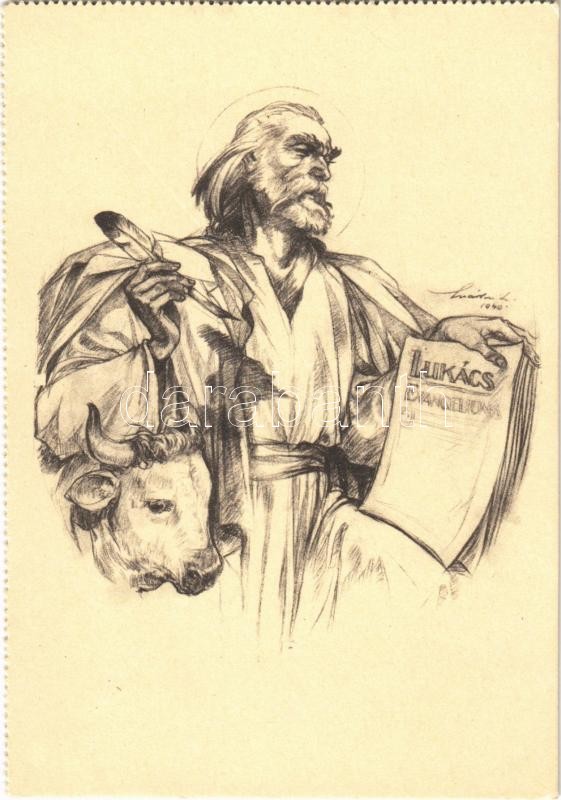Szent Lukács evangelista. Márton Lajos freskó kartonja az abasári templomhoz. Márton L. templomfestő műterme kiadása / Saint Luke the Evangelist s: Márton L.