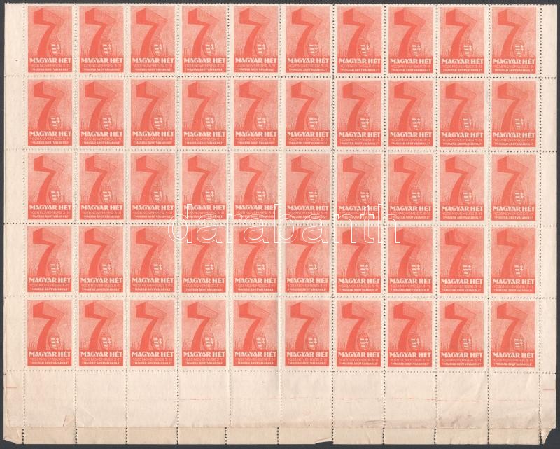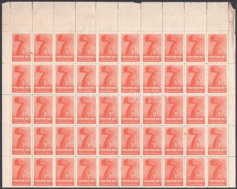 Leírás: 1928 Magyar hét propaganda levélzáró gumi nélküli 100 db-os ív