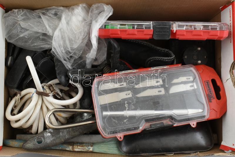 Leírás: Cipősdoboznyi vegyes szerszám tétel, közte újak is