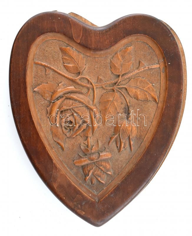 Leírás: Rózsás faragott fa doboz, sérült, 16×14 cm