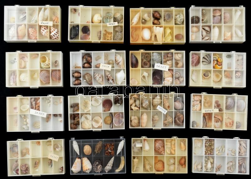 Leírás: Tengeri kagyló és csigaház gyűjtemény, szépen rendszerezve, 16 műanyag tartódobozban