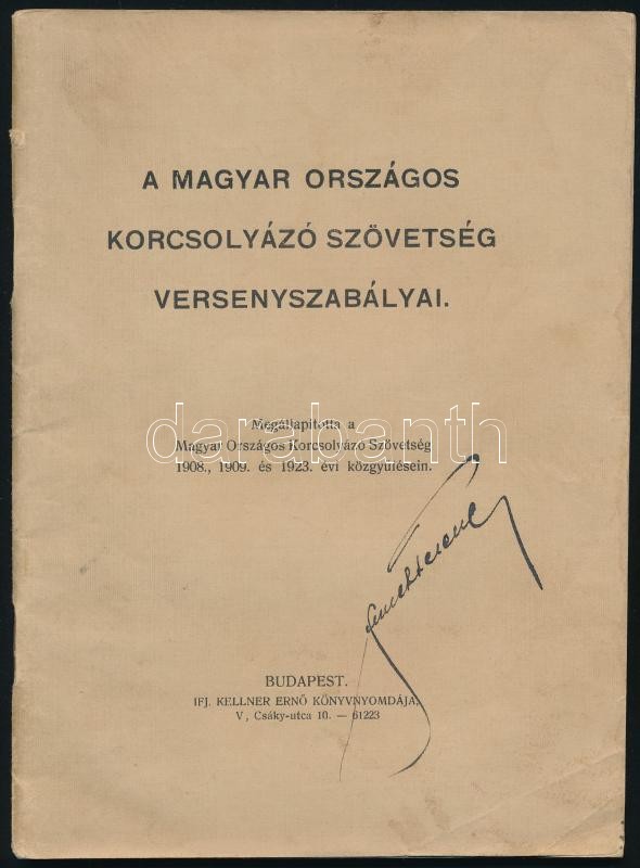 1923 A Magyar Országos Korcsolyázó Szövetség Versenyszabályai 48 p. https://www.darabanth.com/hu/400-Gyorsarveres/400.0/Mutargy-papirregiseg-egyeb/Nyomtatvanyok~500034/1923-A-Magyar-Orszagos-Korcsolyazo-Szovetseg-Versenyszabalyai-48-p~II2455862