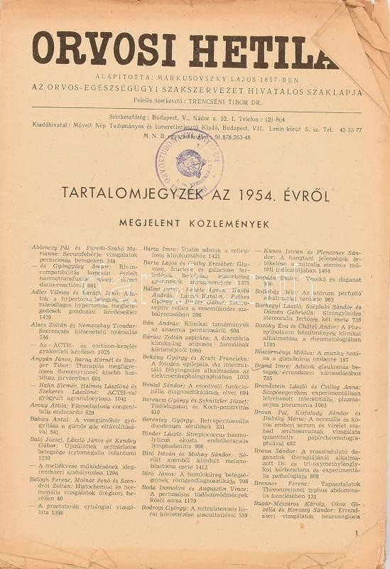 1954 Az Orvosi Hetilap évfolyama könyvbe kötve, műbőr táskában https://www.darabanth.com/hu/400-Gyorsarveres/400.0/Mutargy-papirregiseg-egyeb/Nyomtatvanyok~500034/1954-Az-Orvosi-Hetilap-evfolyama-konyvbe-kotve-mubor-taskaban~II2412598