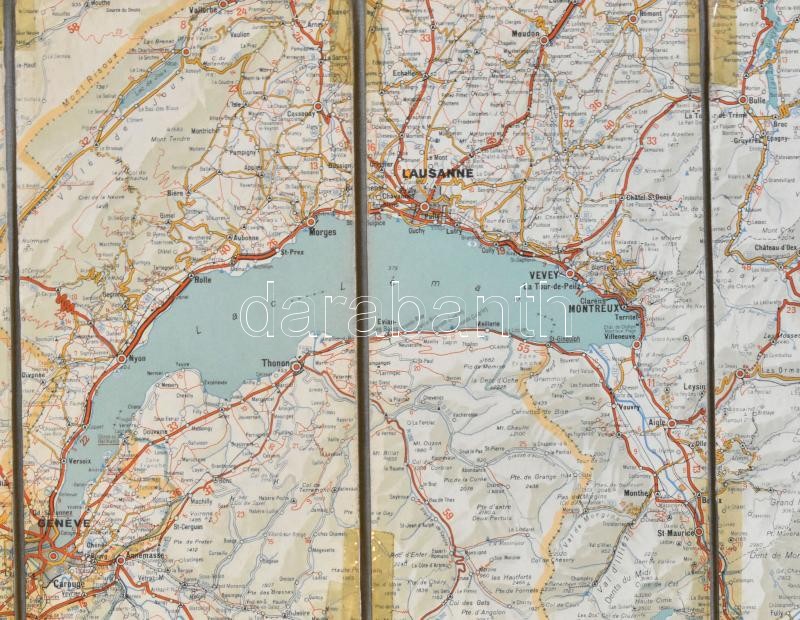 1954 Strassenkarte der Schweiz, Carte Routiére de la Suisse, Svájc úthálózati térképe, nagyméretű, Geogr. Verlag Kümmerly & Frey Bern, vászonra kasírozva, ragasztott, 131x93 cm