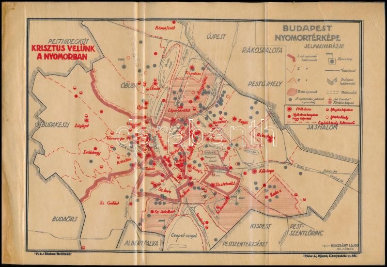 Leírás: Budapest nyomortérképe, készítette: Kocziány Lajos, 20,5×28 cm
