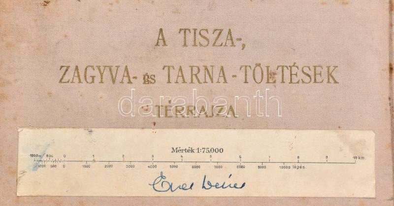 Leírás: cca 1890 a Tisza-, Zagyva- és Tarna-töltések térrajza, 1:75 000, vászontérkép, 70×86 cm