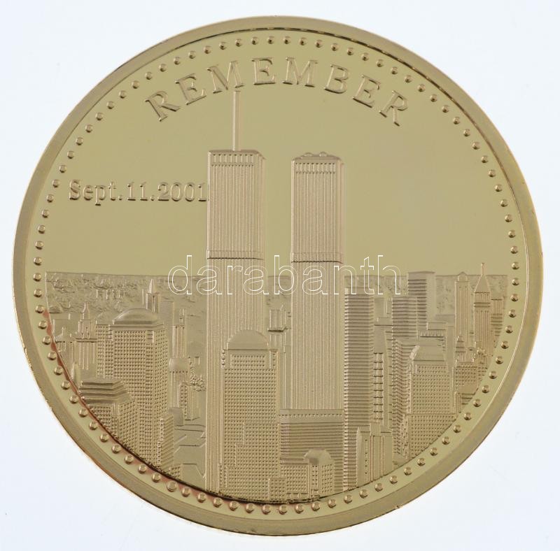 Amerikai Egyesült Államok DN "Amerikai Hősök / Emlékezzünk 2001. szeptember 11-ére (Világkereskedelmi Központ)" aranyozott fém emlékérem (40mm) T:PP