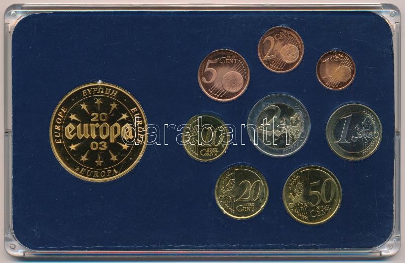 Leírás: Szlovénia 2007. 1c-2E (8xklf) forgalmi szett + 2003. "Europa" kétoldalas aranyozott emlékérem műanyag tokban T:1-2