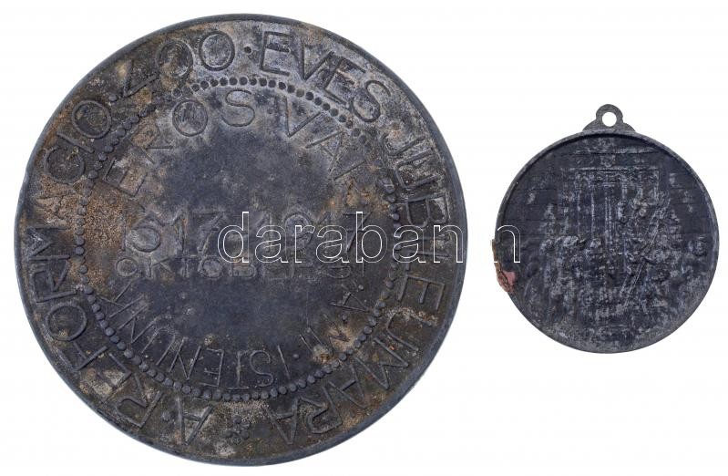 Tóth Gyula (1893-1970) 1917. "Worms 1521 / A reformáció 400 éves jubileumára - Erős vár a mi Istenünk 1517-1917" Zn emlékérem (65mm) + Szász Vilmos (1884-1923) 1917. "A reformáció 400 éves örömünnepére - 1517-1917 - Dr. Luther Márton 1483-1545" kétoldalas Zn emlékérem füllel (33mm) T:2-