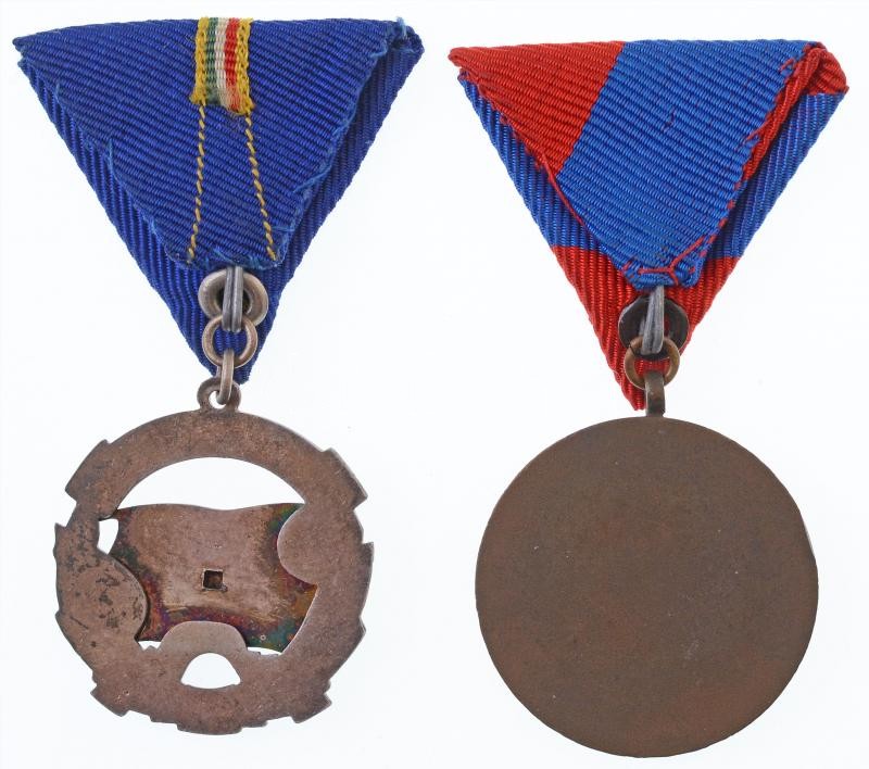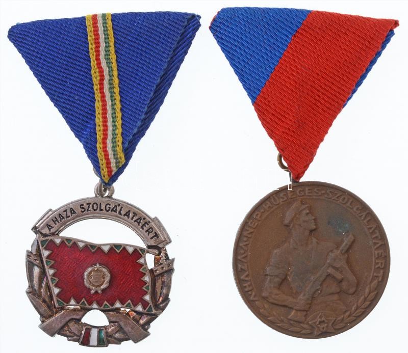 Leírás: 1964. "A Haza Szolgálatáért Érdemérem ezüst fokozat" zománcozott ezüstözött Br kitüntetés mellszalagon + ~1960-1970. "Munkásőr" Br kitüntetés, mellszalagon T:1-,2